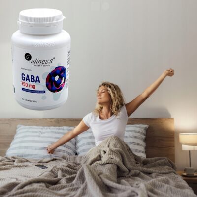 GABA 750 mg od Aliness to skuteczne wsparcie naturalnego wyciszenia organizmu, odpowiednie zarówno dla wegan, jak i osób dbających o jakość i skład suplementów.