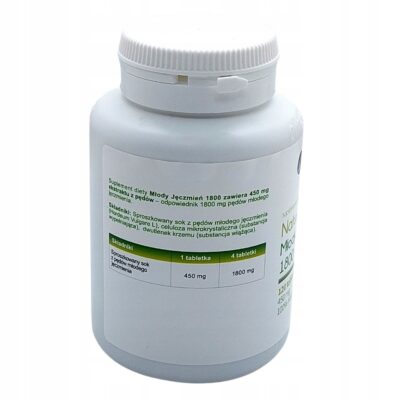 Aliness Naturalny Młody Jęczmień 1800 mg to doskonałe wsparcie dla osób chcących zadbać o oczyszczenie organizmu, wzmocnić odporność oraz dostarczyć organizmowi cennych witamin i minerałów. Dzięki wysokiej jakości sproszkowanemu sokowi z młodego jęczmienia produkt charakteryzuje się lepszą przyswajalnością i skutecznością działania.