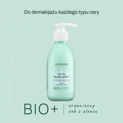 ALOESOVE to delikatny, a zarazem wyjątkowo skuteczny płyn micelarny przeznaczony do codziennego demakijażu twarzy i okolic oczu. Jego formuła oparta jest na naturalnych ekstraktach roślinnych, dzięki czemu pielęgnuje skórę już na etapie oczyszczania – bez ściągnięcia, pieczenia czy podrażnień.