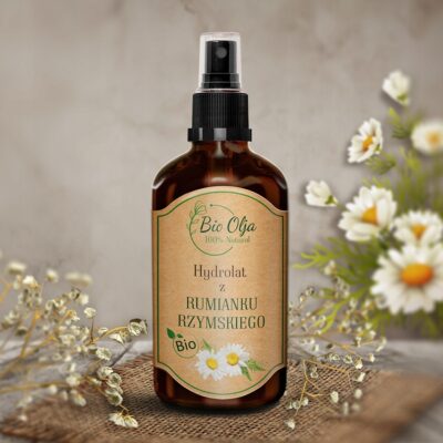 Naturalna woda kwiatowa z rumianku rzymskiego firmy BioOlja, pozwoli Ci czerpać korzyści z tej rośliny w takich zastosowaniach jak aromaterapia, czy w leczeniu podrażnień skóry.