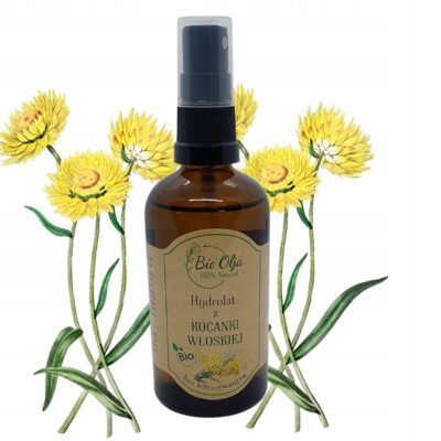 Hydrolat z  kwiatów z Kocanki włoskiej firmy BioOlja, podobnie jak olejek eteryczny, ma wiele, wiele zastosowań. Polecany jest dla cery naczyniowej i wrażliwej. Jest to jeden z najsilniejszych hydrolatów przeciwzapalnych.