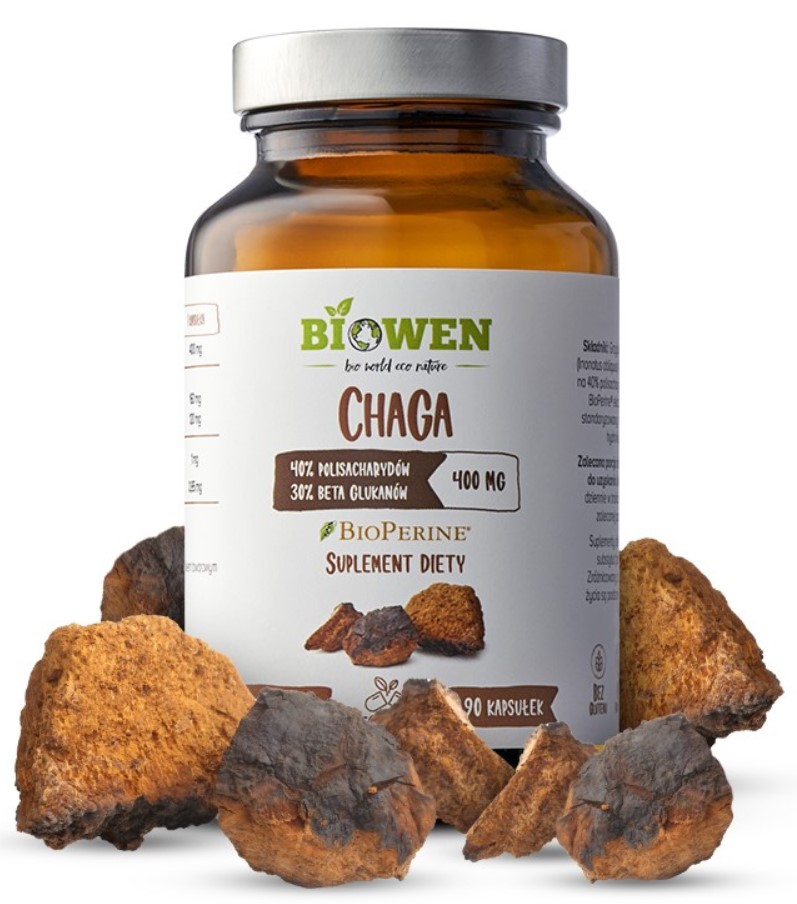Chaga Biowen 400 mg – tradycyjny „grzyb nieśmiertelności” w nowoczesnej, czystej formule. Naturalne wsparcie odporności, serca i witalności w każdej kapsułce.