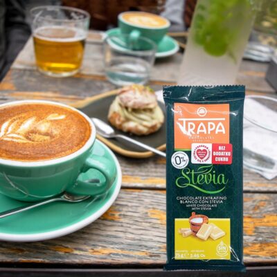 • Czekolada mleczna ze stewią Trapa bez cukru 75 g Bezglutenowa