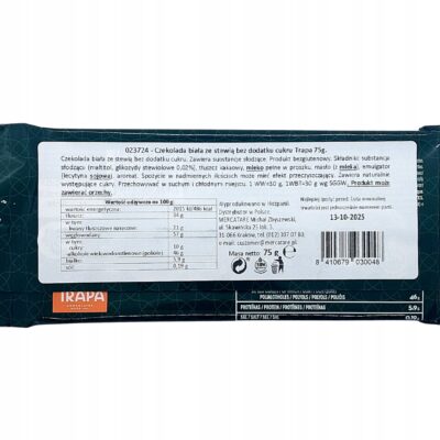 CZEKOLADA BIAŁA | ZE STEWIĄ | BEZGLUTENU | 75G | TRAPA