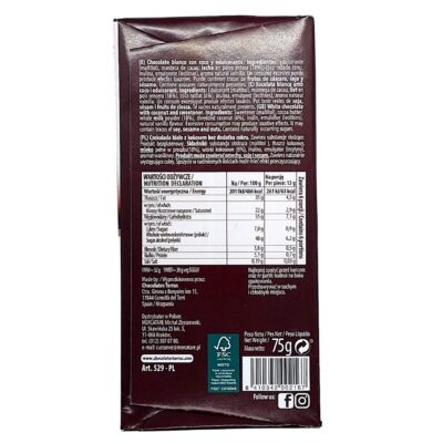 • Czekolada biała Torras bez dodatku cukru 75g Bez barwników i glutenu