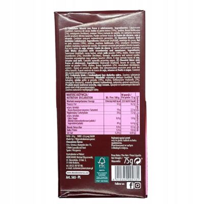 Ta wyjątkowa biała czekolada jest wzbogacona liofilizowanymi truskawkami, które nadają jej niepowtarzalnego smaku i aromatu. Nie zawiera żadnych sztucznych barwników ani aromatów, dzięki czemu można cieszyć się jej naturalnym smakiem i korzyściami dla zdrowia.