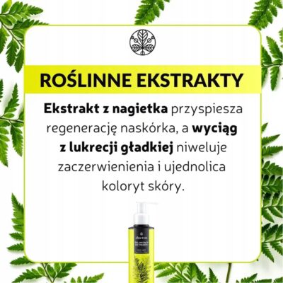 - Regeneracja i ukojenie: Ekstrakt z nagietka przyspiesza regenerację naskórka, pomagając skórze szybko się odnawiać, natomiast wyciąg z lukrecji gładkiej niweluje zaczerwienienia i ujednolica koloryt skóry.