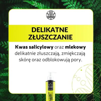 - Złuszczanie i odblokowanie porów: Kwas salicylowy i mlekowy delikatnie złuszczają martwe komórki naskórka, odblokowując pory i zapobiegając powstawaniu niedoskonałości.