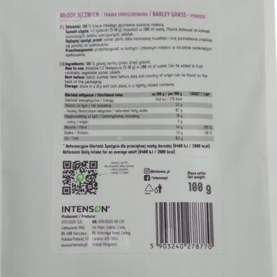 Intenson Młody jęczmień mielona trawa suszona 100 g