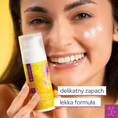 VIANEK Prebiotyczny Krem Rozświetlający z Witaminą C to zaawansowany produkt do codziennej pielęgnacji każdego rodzaju skóry, szczególnie tej, która potrzebuje dodatkowego blasku, rozjaśnienia i wyrównania kolorytu. Dzięki wyjątkowej formule z witaminą C, inuliną oraz ekstraktem z aceroli, krem głęboko nawilża, wspiera regenerację skóry i wzmacnia jej barierę ochronną. Codzienne stosowanie kremu pozwala na uzyskanie efektu zdrowej, pełnej blasku cery, która wygląda na bardziej wypoczętą i młodszą.