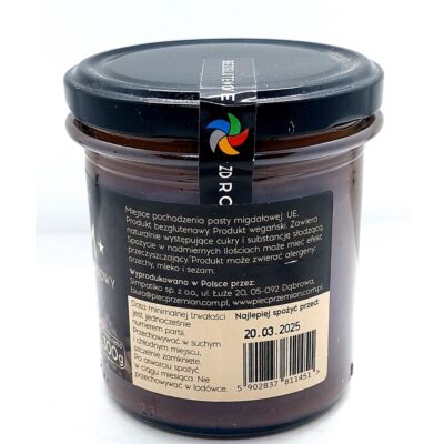Krem Migdałowo Czekoladowy KETO bezglutenowy marki Pięć Przemian to idealna alternatywa dla popularnych, wysokocukrowych smarowideł kanapkowych. Ten wyjątkowy produkt, stworzony na bazie chrupiących migdałów i gorzkiej czekolady, zaspokoi Twoje podniebienie, jednocześnie spełniając wymogi diety ketogenicznej.