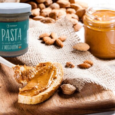 Pasta migdałowa Krukam to naturalne masło migdałowe stworzone ze zmielonych migdałów. Pasta to 100% produkt naturalny, bez dodatku cukru, soli, oleju palmowego i konserwantów. Produkt został zaprojektowany dla osób dbających o dietę.