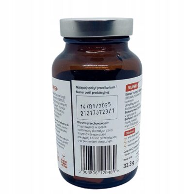 • BioPerine® – ekstrakt z owoców pieprzu czarnego standaryzowany na 95% piperyny, wspierający wchłanianie składników.