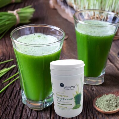 Jak stosować Naturalny Młody jęczmień Aliness: Marka Aliness oferuje zarówno formę tabletek (Naturalny Młody Jęczmień 1800), jak i proszku (Naturalny Młody Jęczmień PLUS Fibregum). Proszek z młodego jęczmienia można dodawać do posiłków: koktajli owocowych, warzywnych, musli, jogurtów, zup lub rozpuścić w wodzie i wypić.