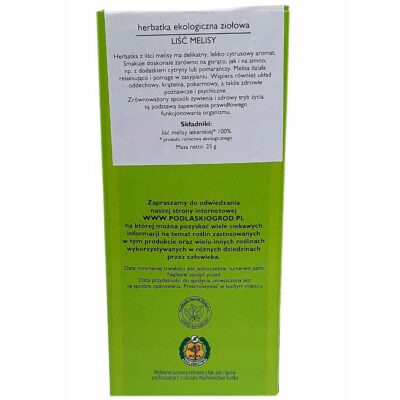 • Skład: 100% liść melisy (produkt ekologiczny).