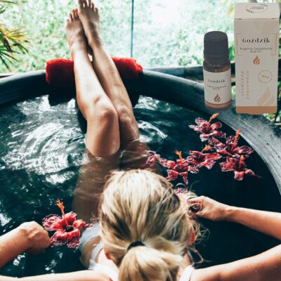 Dodaj 6–9 kropli olejku do łyżki oleju bazowego i wymieszaj z wodą w wannie. Taka kąpiel rozgrzeje, odpręży i zrelaksuje ciało.