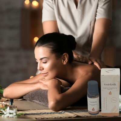 Rozcieńcz 3 krople w jednej łyżce oleju bazowego (np. migdałowego, kokosowego) i wmasuj w obolałe miejsca. Idealne na bóle mięśniowe i stawowe.