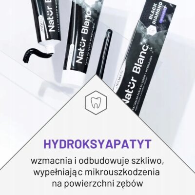 • Hydroksyapatyt, składnik naturalnie występujący w szkliwie, wzmacnia zęby i wypełnia mikrouszkodzenia.
