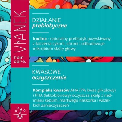 • Inulina z Cykorii: Ten naturalny prebiotyk odbudowuje i wzmacnia mikrobiom skóry głowy, poprawiając jej ogólną kondycję oraz zwiększając odporność na negatywne czynniki zewnętrzne.
