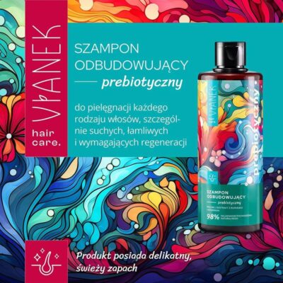 Prebiotyczny szampon odbudowujący VIANEK to doskonały wybór dla osób z suchymi, łamliwymi włosami, które wymagają intensywnej regeneracji. Ten szampon łączy w sobie siłę natury i zaawansowane działanie prebiotyków, zapewniając nie tylko dokładne oczyszczenie, ale także głęboką odbudowę i wzmocnienie włosów.
