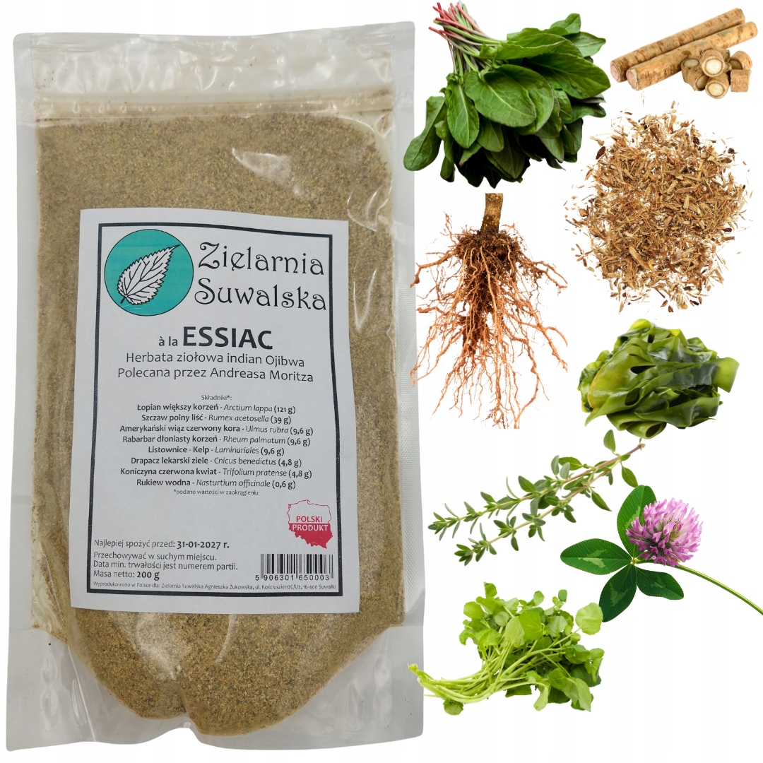 Wersja czteroskładnikowa została spopularyzowana w XX wieku przez kanadyjską pielęgniarkę René Caisse (Essiac to jej nazwisko pisane wspak), natomiast Zielarnia Suwalska sięga po oryginalną, bogatszą kompozycję ośmiu ziół.