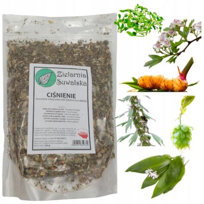 Mieszanka ziołowa „Ciśnienie” od Zielarni Suwalskiej to starannie opracowana kompozycja ziół wspierających prawidłowe funkcjonowanie układu krążenia i serca.