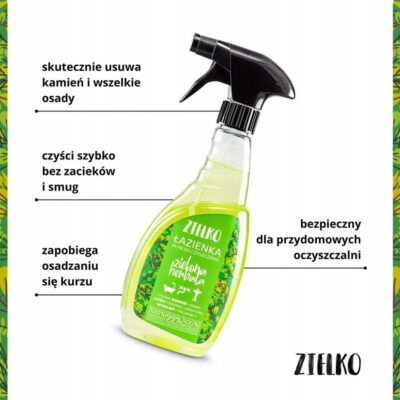 Ekologiczny płyn do łazienki ZIELKO z zapachem zielonej herbaty to innowacyjny produkt, który łączy skuteczność w czyszczeniu z dbałością o środowisko i zmysły użytkowników. Dzięki specjalnie opracowanej formule, ten płyn szybko radzi sobie z kamieniem, osadami na armaturze oraz ceramice, a także zapobiega osadzaniu się kurzu, co sprawia, że utrzymanie łazienki w czystości staje się łatwiejsze i bardziej efektywne.